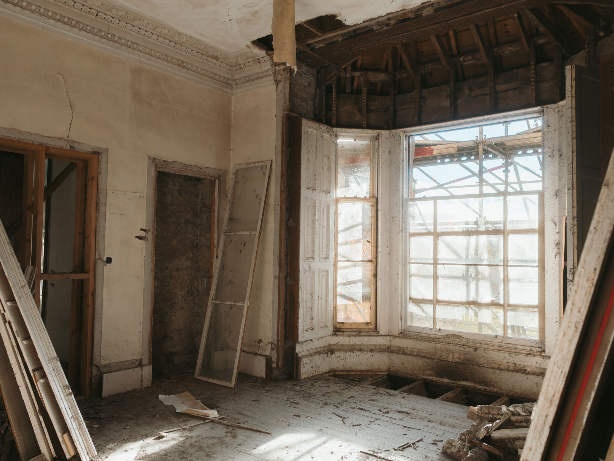 For more than two decades, Drumearn House has been open to the elements. With no one living in the house and many of the windows broken, it had, over time, become part of the natural landscape again, welcoming wildlife of all kinds including owls, pigeons and three species of bat!